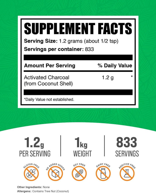 BulkSupplements.com Coconut Charcoal Activated Charcoal Powder - Vegan Teeth Whitening Powder - 1200mg per Serving, 1kg (2.2 lbs)