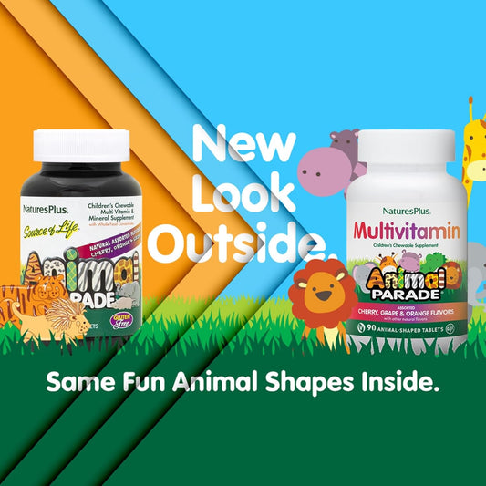 Natures Plus Animal Parade Sugar-Free Children's Multivitamin Chewables - Assorted Flavors - 180 Tablets, 90 Servings