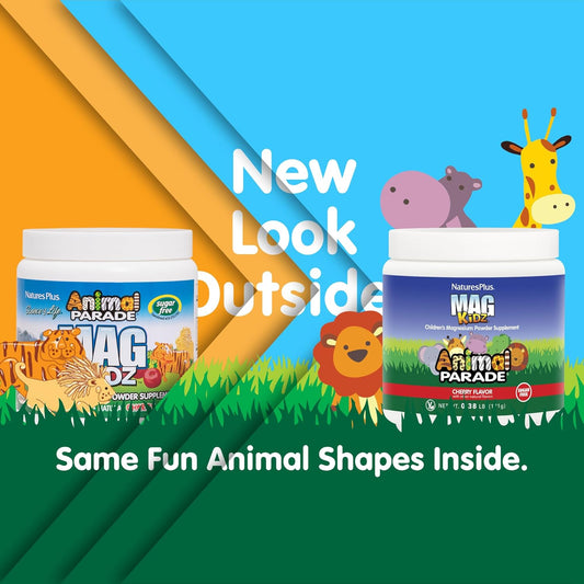 Natures Plus Animal Parade MagKidz Children's Magnesium Powder, Cherry Flavor - 45 Servings - Bone & Muscle Support