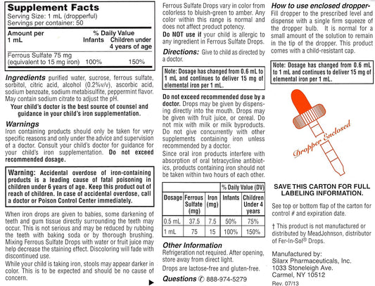 Peppermint Flavored Iron Supplement Drops for Infants, Toddlers & Children - 50 ml Bottles (Pack of 2) - Includes Measuring Dropper