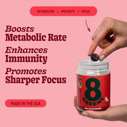 Organic Super Greens Gummies for Metabolism, Immunity & Focus - 100 Count
