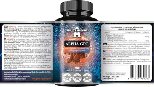 High Potency Alpha-GPC 600mg - 90 Vegan Choline Capsules - Memory and Concentration Supplement - 99% Choline Alfoscerate - Cognitive Support