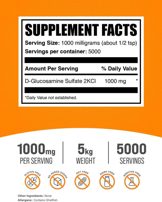 BulkSupplements.com Glucosamine Sulfate Powder - 1000mg per Serving - Joint Support Supplement - Gluten Free - 5kg (11 lbs) (Pack of 5)