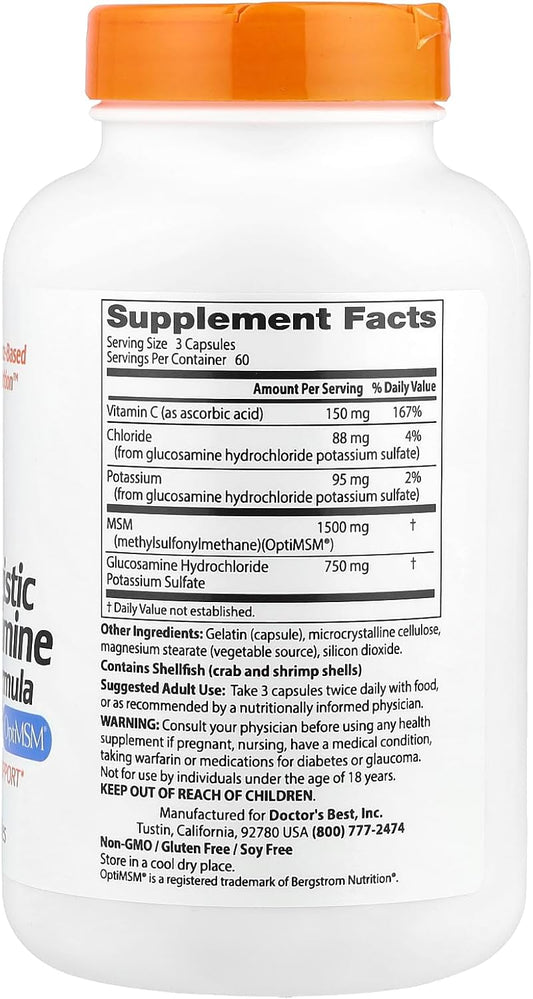 Doctors Best Glucosamine MSM Formula for Joint Support - Non-GMO & Gluten Free - 180 Capsules