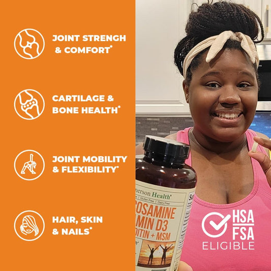 Joint and Bone Health Supplement with Glucosamine, Chondroitin, and MSM for Joint Support and Relief - 180 Capsules