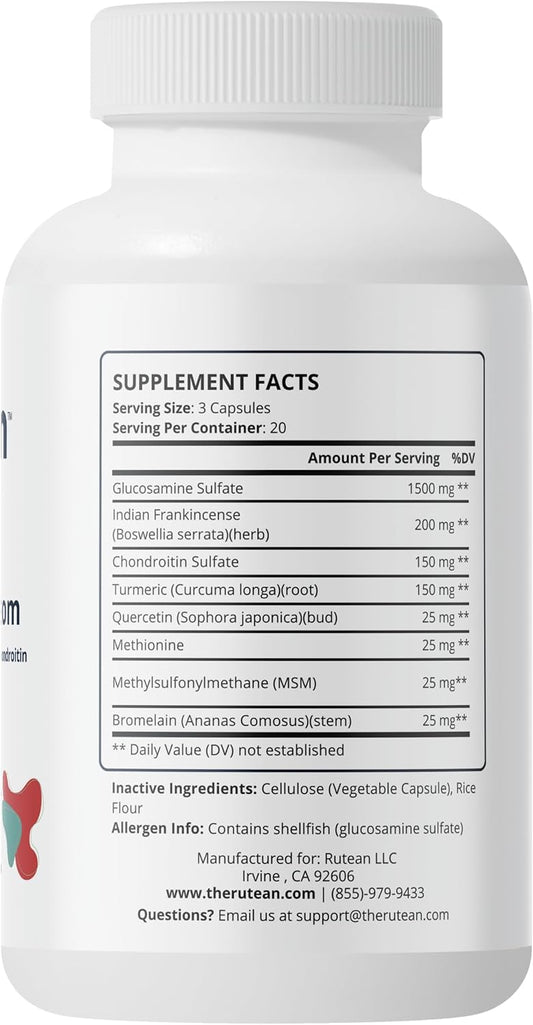 Glucosamine HCI 1500mg Chondroitin Sulfate 1200mg Supplement for Joint Health - 120 Capsules, Men & Women, Supports Daily Function