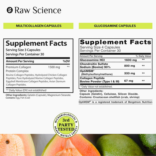 Multi Collagen and Glucosamine Capsules for Bone, Joint, Hair & Nails Support - 90 Collagen Capsules, 120 Glucosamine Capsules