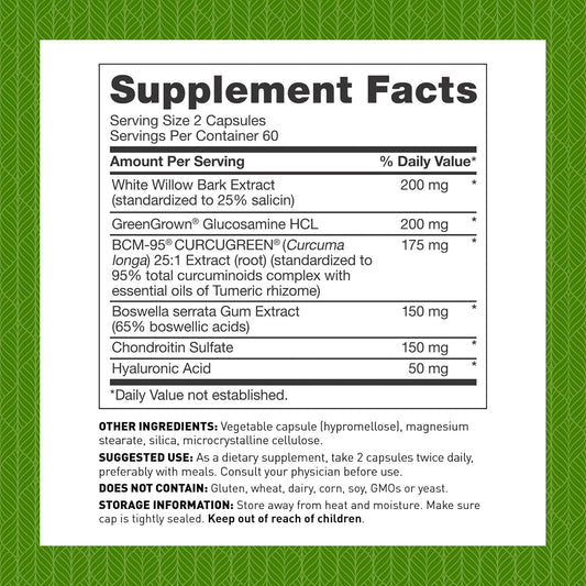 Joint Support Supplement Capsules with Glucosamine, MSM, Boswellia, Curcumin, and Collagen - Pack of 90, 2 Capsules Per Serving.