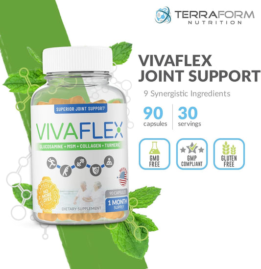 VivaFlex Joint Support Supplement with 9 Premium Ingredients for 1 Month - TerraForm Nutrition