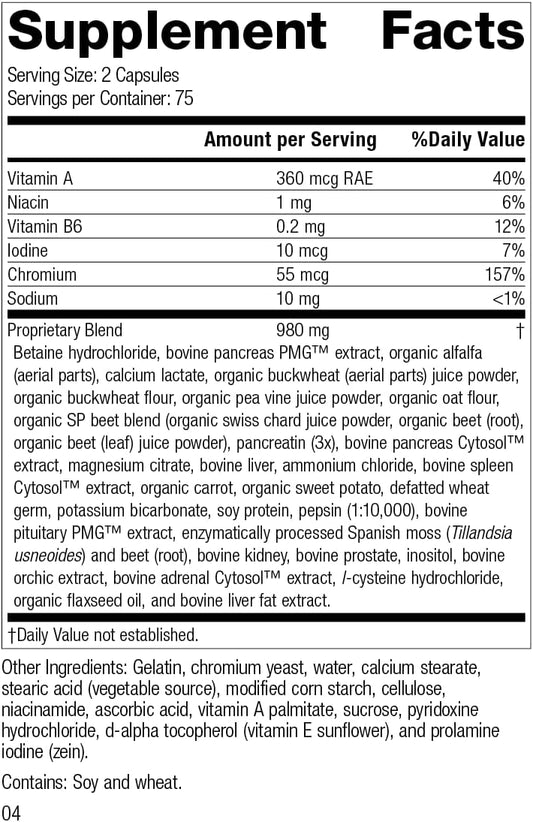 Whole Food Bowel, Pancreas, and Metabolism Support Capsules with Antioxidants and Gallbladder Support - 150 Count