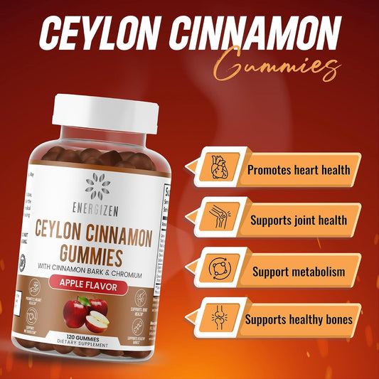 Antioxidant-Rich Cinnamon + Chromium Vegan Gummies - 120 Count - Joint & Brain Support, Sugar-Free, Non-GMO, Gluten-Free - Apple Flavor