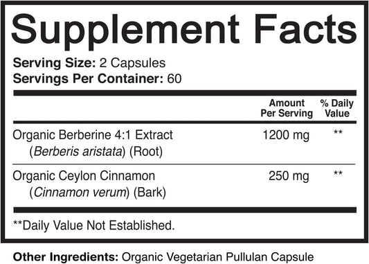 Organic Berberine with Ceylon Cinnamon Capsules - 1450mg, 120 Count by NutriFlair