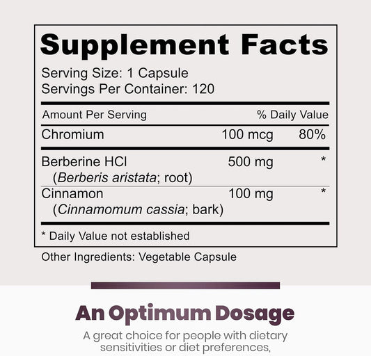 Premium Berberine HCl 500mg - 120 Capsules - Cardiovascular Gastrointestinal Immune Support - Chromium Cinnamon Supplement