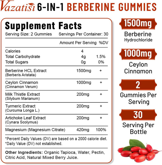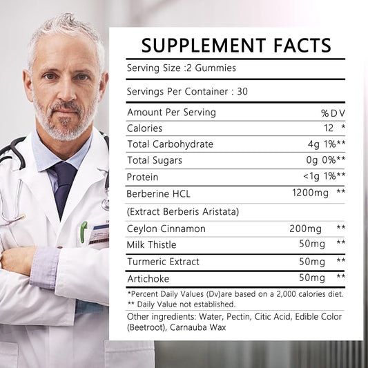 Berberine Gummies with Ceylon Cinnamon, Milk Thistle, Turmeric, Artichoke - 1200mg Sugar-Free Supplement for Immunity & Metabolism
