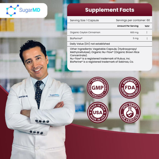 Organic Ceylon Cinnamon Capsules - 600mg Supplement, Non-GMO, Gluten-Free, Vegan - 60 Day Supply