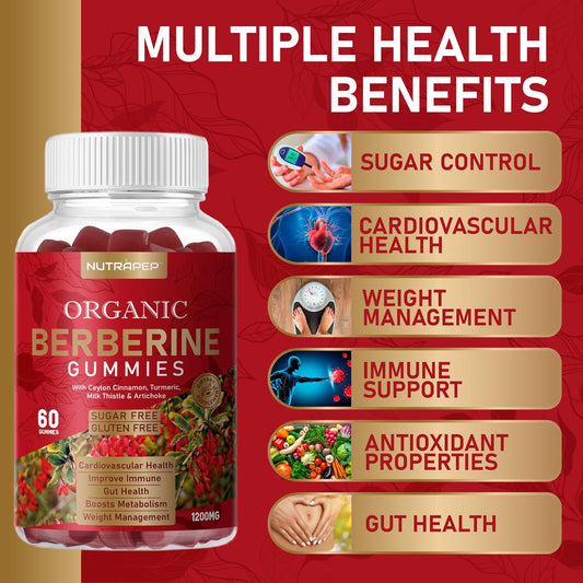 High Potency Berberine HCl Weight Loss Gummies with Ceylon Cinnamon, Turmeric, Milk Thistle, Artichoke - 1200mg - Sugar Free, Gluten Free Supplement