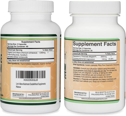 120 Count Lion's Mane Mushroom and Magnesium L-Threonate Supplements by Double Wood