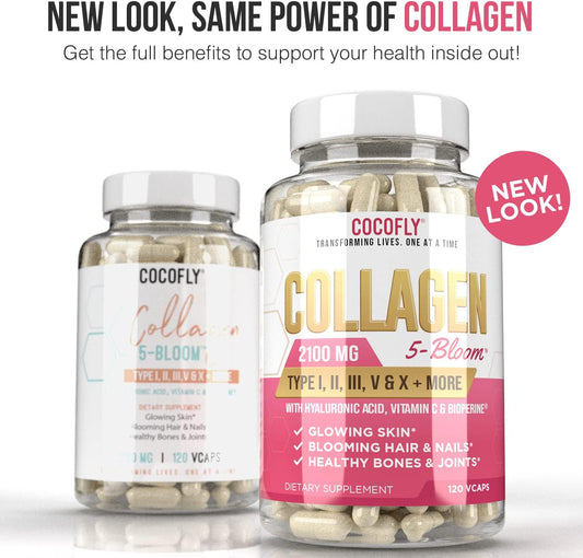 Premium Collagen Pills for Women - 120 Capsules, 2100mg Hydrolyzed Collagen, Grass Fed Supplements with Hyaluronic Acid, Vitamin C, Bioperine - Anti-Aging Support for Skin and Hair