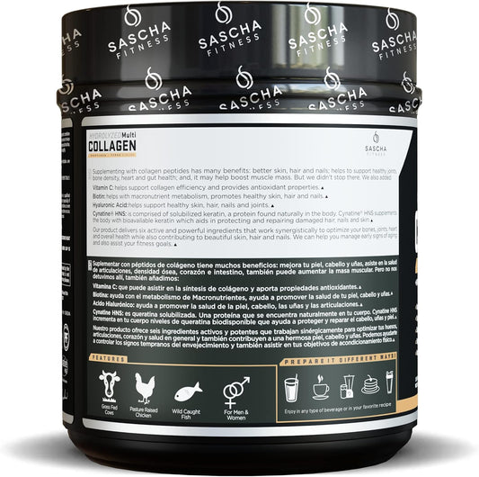 Hydrolyzed Multi Collagen Peptides with Hyaluronic Acid, Biotin, Vitamin C & E for Hair, Skin, and Bone Support - Caramel Macchiato Flavor