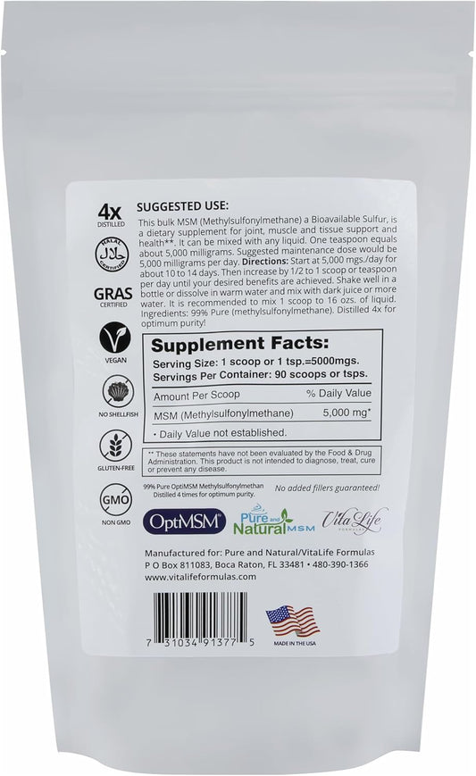 16oz MSM Bulk Flake for Joint Pain Relief, Range of Motion, & Collagen | Pure & Natural Soothing Formula | Made in USA