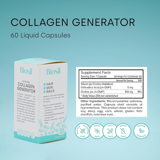 Pack of 2 Biosil Collagen Generator Liquid Capsules with Patented ch-OSA Complex - Generate & Protect Collagen - GMO Free - 60-Day Supply