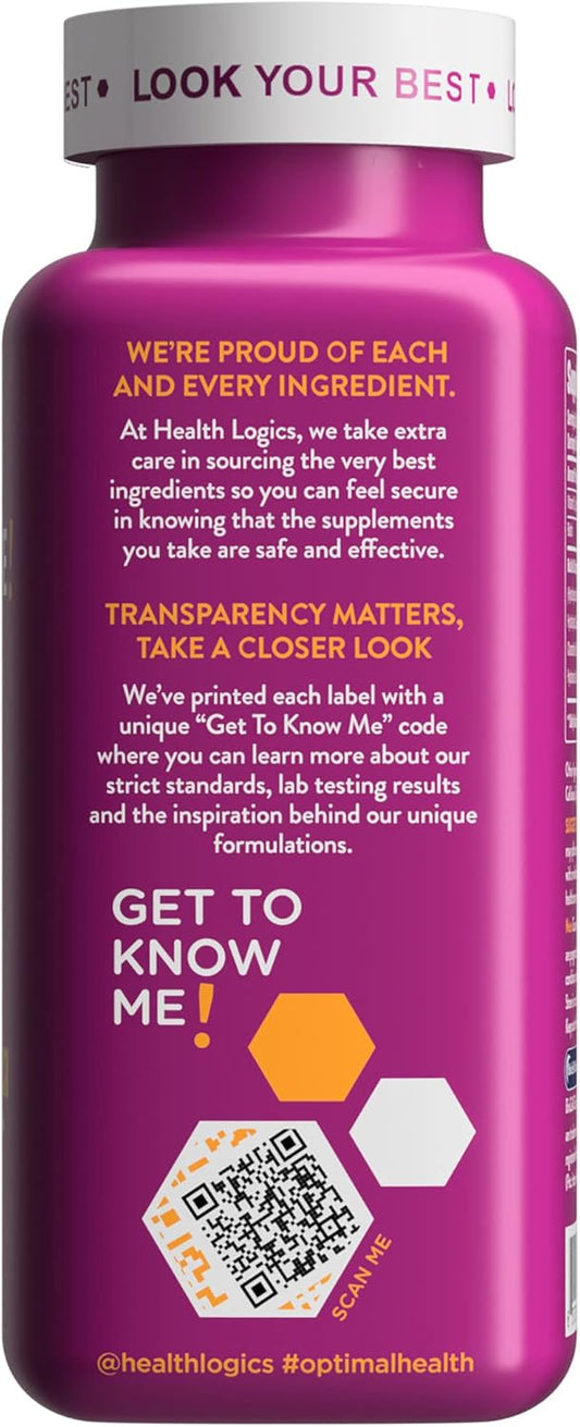 Health Logics Radiate | Biotin Hair Skin Nails Supplement with Collagen & Vitamin C | Reduce Facial Lines & Wrinkles, Promote Joint Comfort