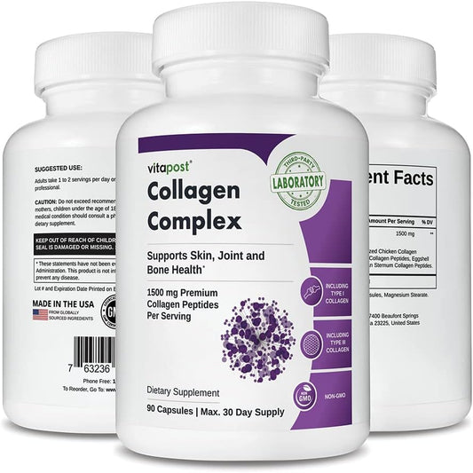 Collagen Complex Capsules - 1500mg per Serving for Healthy Skin, Bones, and Joints - 90 Capsules