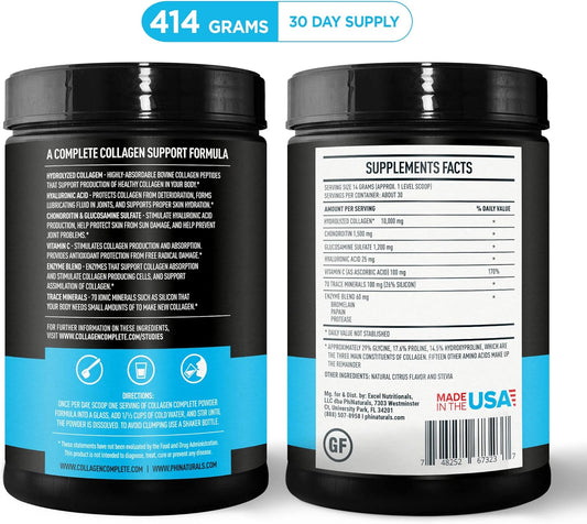PhiNaturals Collagen Complete: Citrus Flavored Protein Blend with 8 Collagen Boosters & Hydrolyzed Peptides - Anti-Aging Supplement for Skin, Hair, Nails, Bones, Joints - Includes Hyaluronic Acid