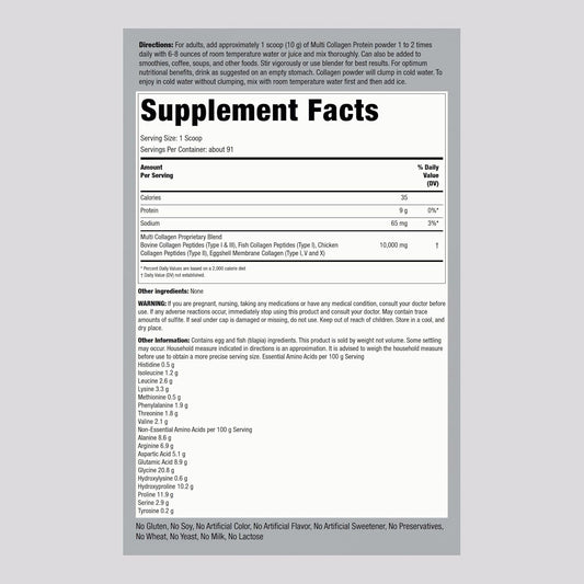 Piping Rock Multi Collagen Protein Powder 32oz - Types I, II, III, V, X - Unflavored Supplement for Women and Men - Non-GMO, Gluten Free