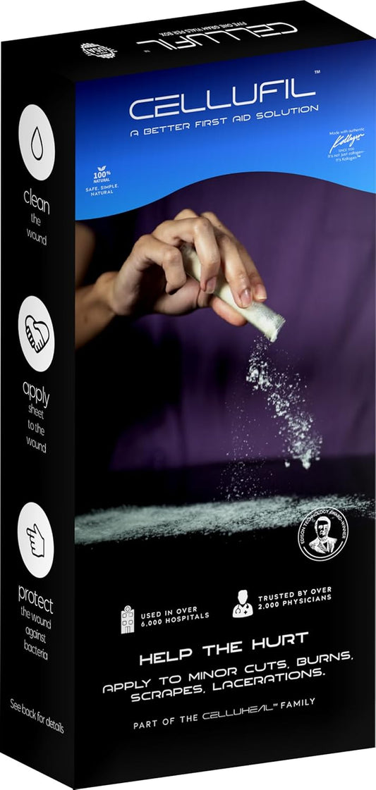 Celluheal Cellufil® Collagen Particles: Non-Hydrolyzed Bovine Collagen for Wound Care, Tissue Regeneration, First Aid - Box of 5 Vials