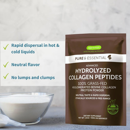 Igennus Hydrolyzed Bovine Collagen Protein Powder - Grass Fed, Types 1, 2 & 3, Non-GMO - 4 x 40 Servings