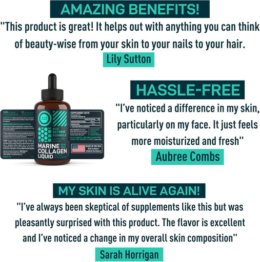 Liquid Marine Collagen Peptides Supplements with Hyaluronic Acid - Hair, Skin, and Nails Vitamins - Lemon Flavor - 2oz Bottle