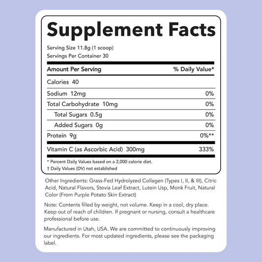 Grass-Fed BlackBerry Lemonade Super Collagen - Hydrolyzed Types I, II, & III, 30 Servings