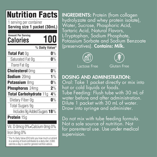 Medtrition Liquid Collagen Peptides Type I & III with 15g Protein per oz - Prosource Plus Neutral Packets