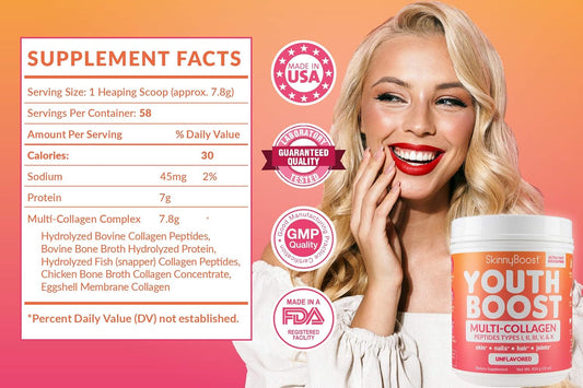 Youth Boost Advanced Multi-Collagen Powder - 5 Types of Hydrolyzed Collagen Peptides for Hair, Skin, Nails & Joints - Grass Fed, Keto Friendly - Unflavored
