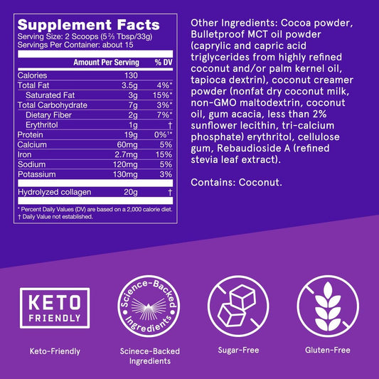 Bulletproof Chocolate Collagen Protein Powder with MCT Oil - 19g Protein, 17.6 Oz - Supports Healthy Skin, Bones, and Joints with Collagen Peptides and Amino Acids