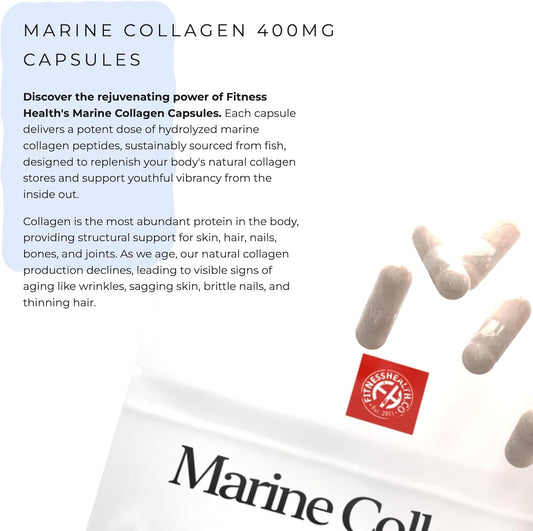 High Strength Marine Collagen Capsules for Hair, Skin, & Joints - Protein Supplement for Women & Men - 400mg, 60 Pack