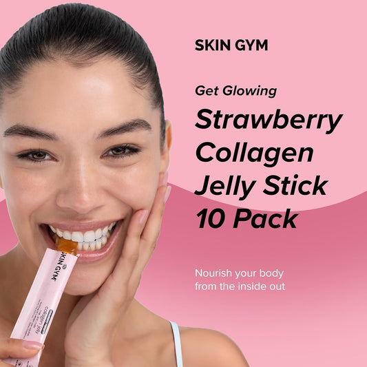 Marine Collagen & Vitamin C Skin Gym Jelly 10-Pack - Daily Beauty Supplement for Hair, Skin, and Nails with Hyaluronic Acid & Strawberry Flavor