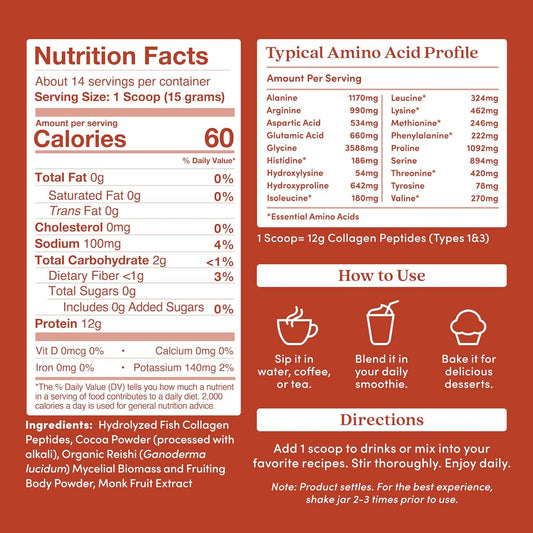 Wild Caught Chocolate Marine Collagen Peptides Powder - Type 1, 2 & 3, Gut & Joint Support - Hair, Skin, Nails - 7.41 oz Sugar-Free Formula - Sustainable