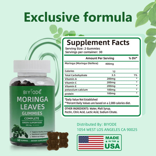 BIYODE Moringa Leaf Gummies - Heart Health, Energy, Joint Support - 400mg Antioxidants - 60 Gummies - 30 Day Supply