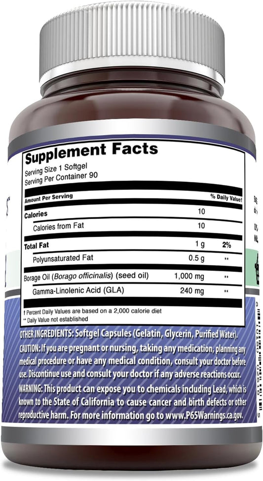 High-Quality 1000mg Borage Oil Supplement Softgels - 90 Count - Non-GMO & Gluten-Free - Made in USA by Amazing Nutrition