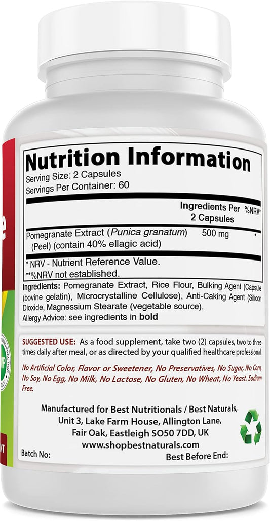 Organic Pomegranate Extract Capsules - 250 mg, 120 Count - Top Quality Formula