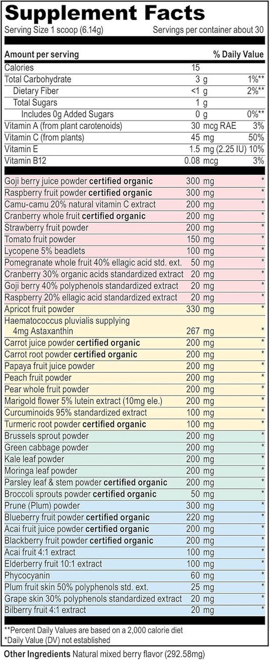 Vegan Antioxidant Superfood Powder for Vibrant Health - 30 Servings