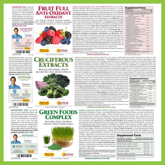 Andrew Lessman Healthy Foods Bundle - 30 Count Each of Cruciferous, Anti-Oxidant, and Green Foods Complex. Nutritional Benefits of 20+ Healthiest Foods.Vendor:ANDREW LESSMANRegular price $190.89 AUDRegular priceUnit price / per-