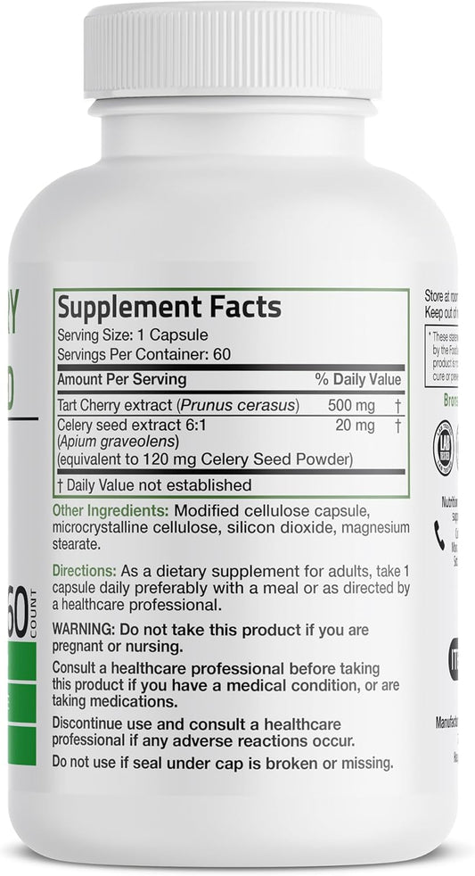 Non-GMO Bronson Tart Cherry Extract & Celery Seed Capsules for Uric Acid Cleanse, Joint Mobility & Muscle Recovery - 60 CapsulesVendor:BronsonRegular price $98.64 AUDRegular priceUnit price / per-