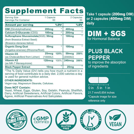 Menopause Support Supplement 200mg/400mg for Hot Flashes, Mood Swings, Disturbed Sleep - Hormone Balance, PMS & PCOS Relief - Estrogen Supplement with DIM SGS & Dong QuaiVendor:LILICARERegular price $110.42 AUDRegular priceUnit price / per