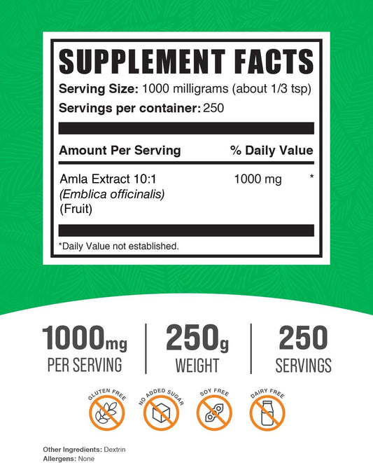 Organic Amla Extract Powder - Pure Indian Gooseberry Supplement - Gluten Free, 1000mg per Serving - 250g (8.8 oz) Pack of 1Vendor:BulkSupplementsRegular price $146.20 AUDRegular priceUnit price / per-