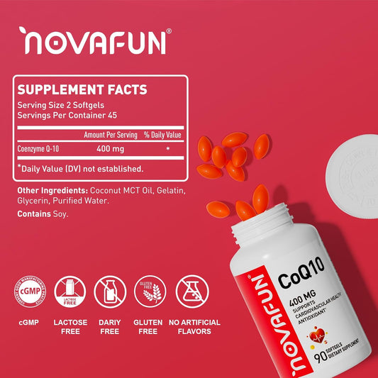 High Potency Novafun CoQ10 Softgels 400mg - Heart Health & Antioxidant Support - 90 Count - Energy Boosting Supplement