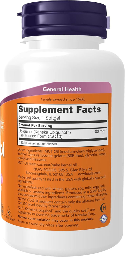 NOW Supplements Ubiquinol 100 mg Softgels - High Bioavailability CoQ10 Formula - 120 Count