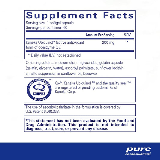 Pure Encapsulations Ubiquinol-QH 100mg CoQ10 Softgel Capsules for Energy & Heart Health - Coenzyme Antioxidant Supplement